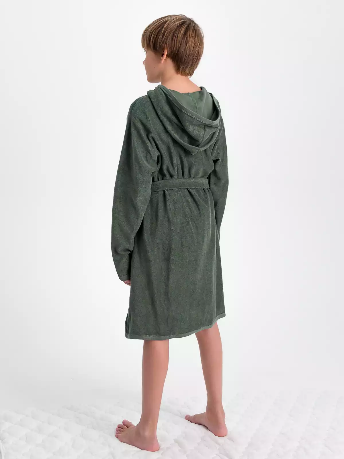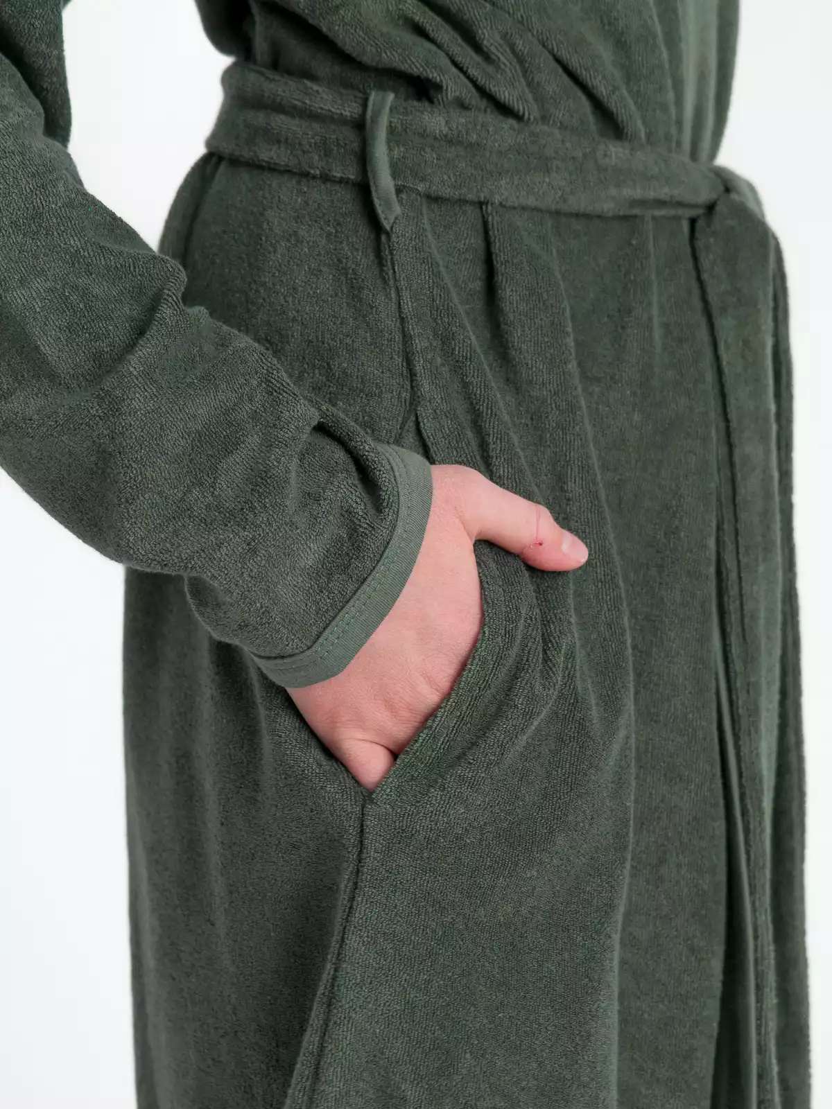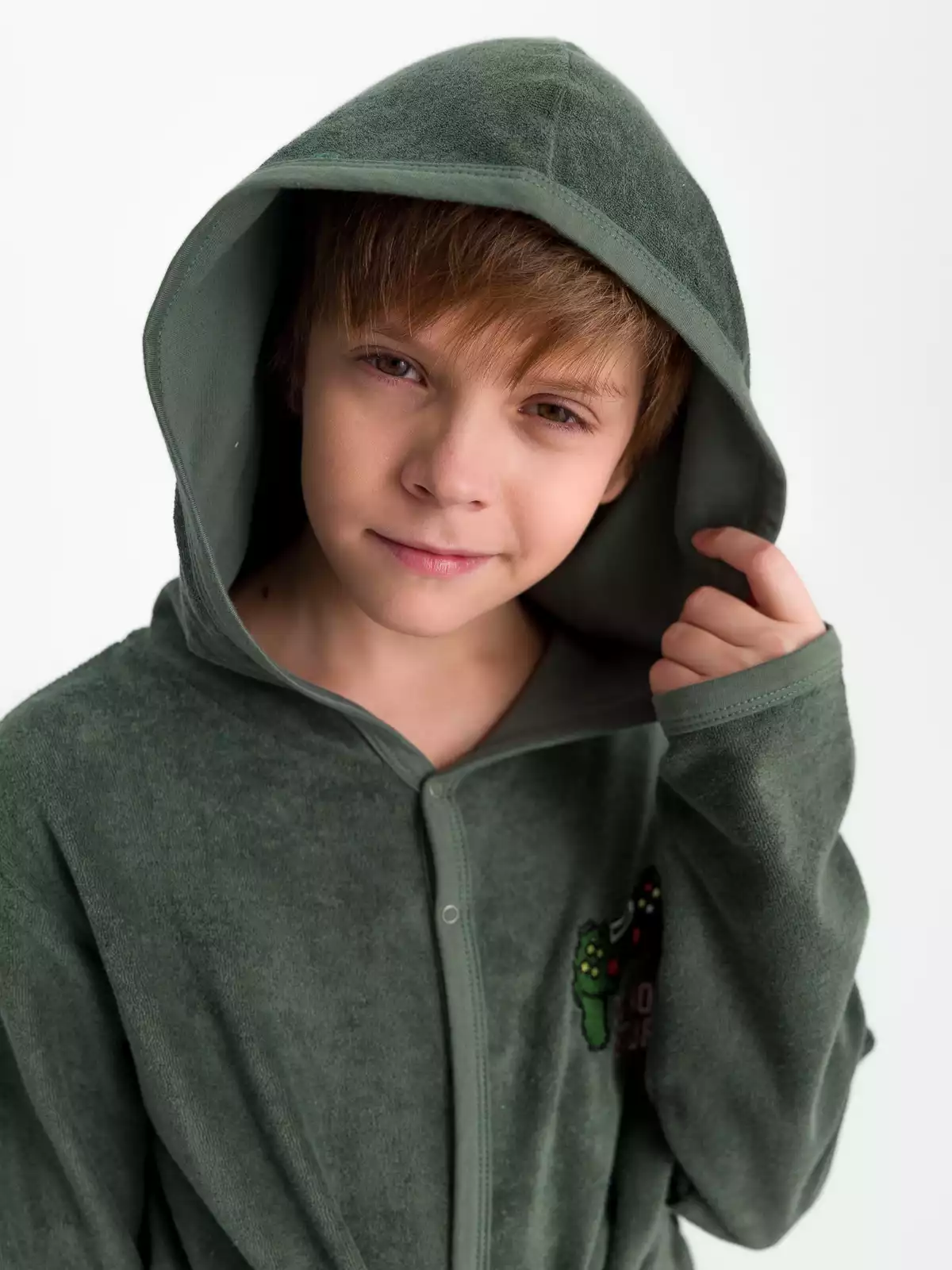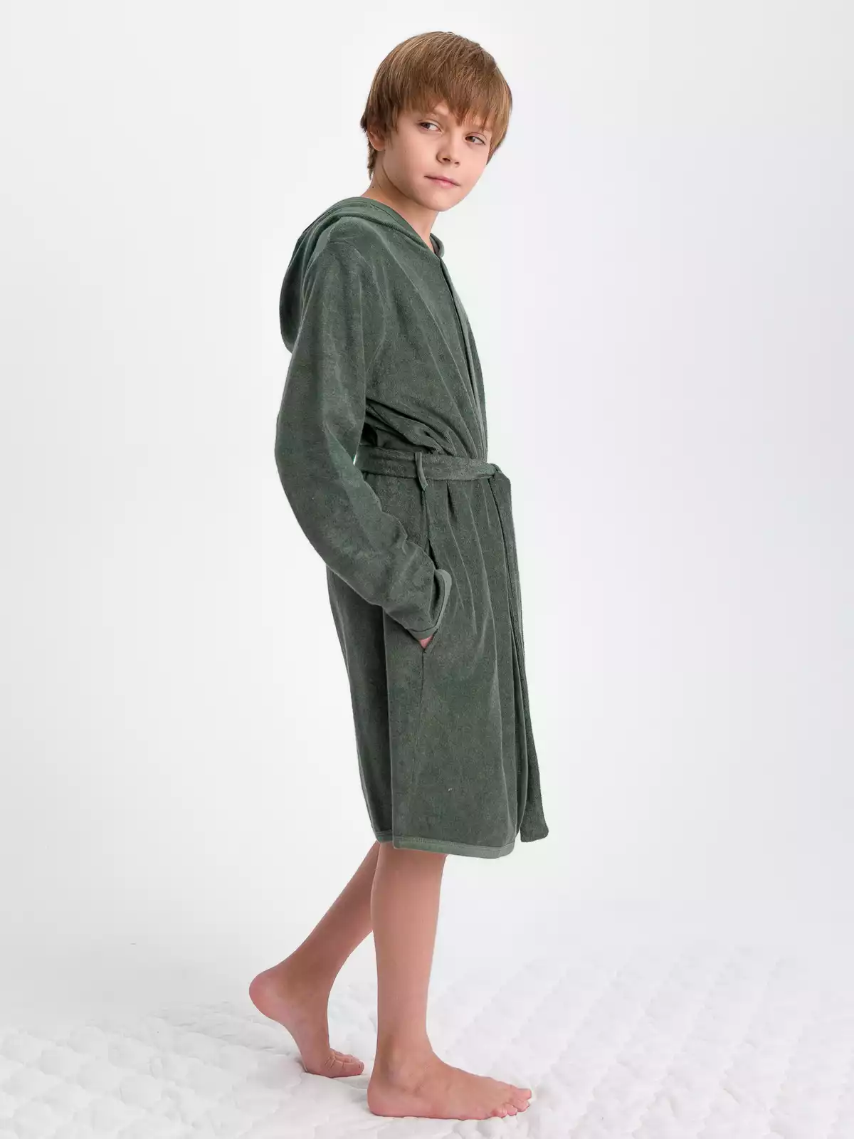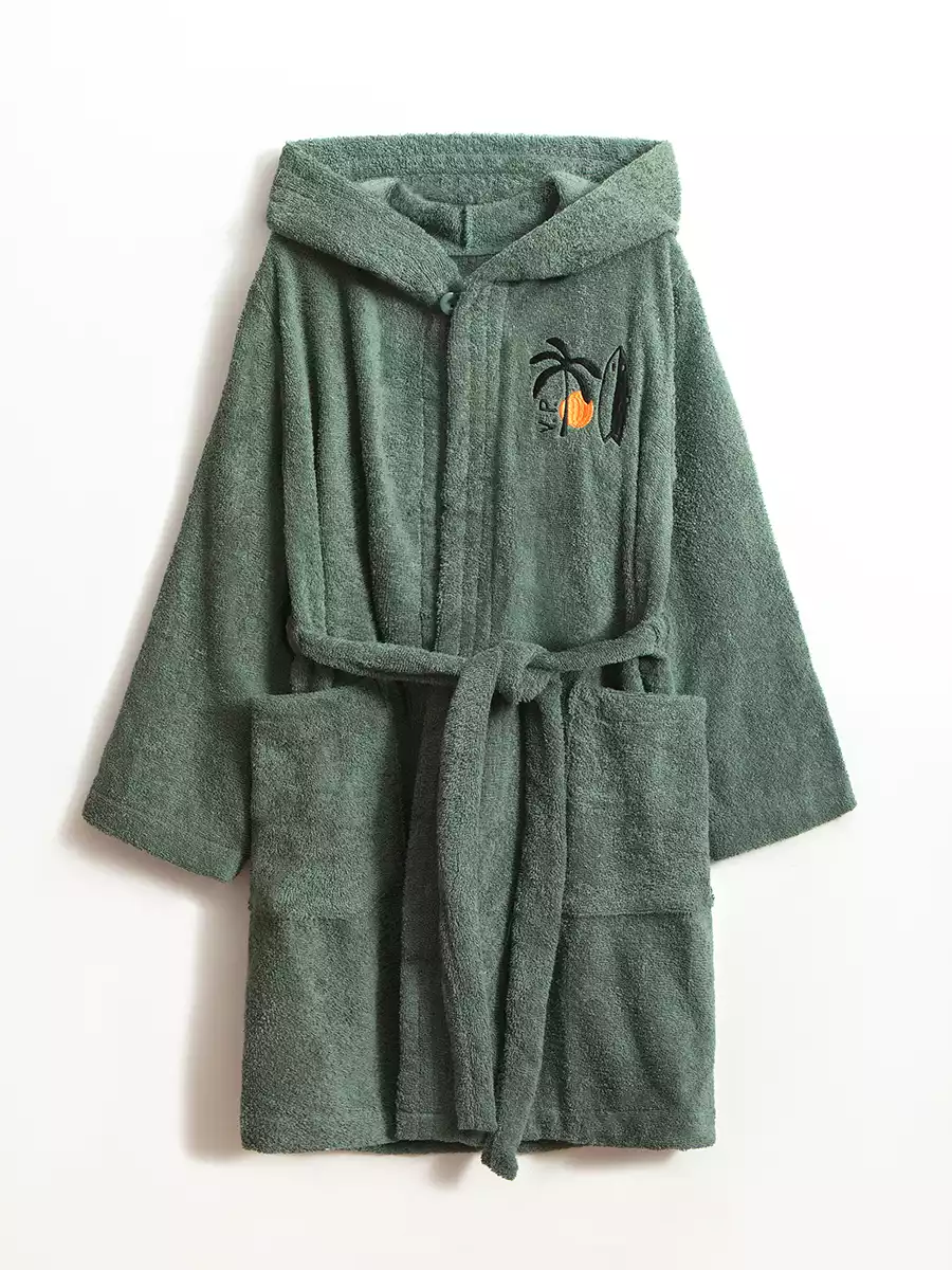 Мягкий халат из двусторонней махровой ткани прекрасно подходит для использования после водных процедур. Хлопковый материал отлично впитывает влагу и сохраняет тепло, создавая комфортные ощущения после купания в бассейне, море или принятия ванны. Удобный капюшон защитит от сквозняков и продувания.