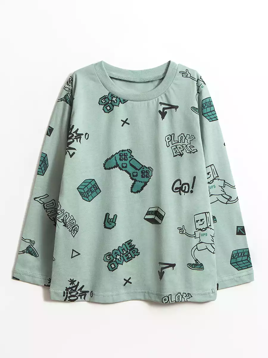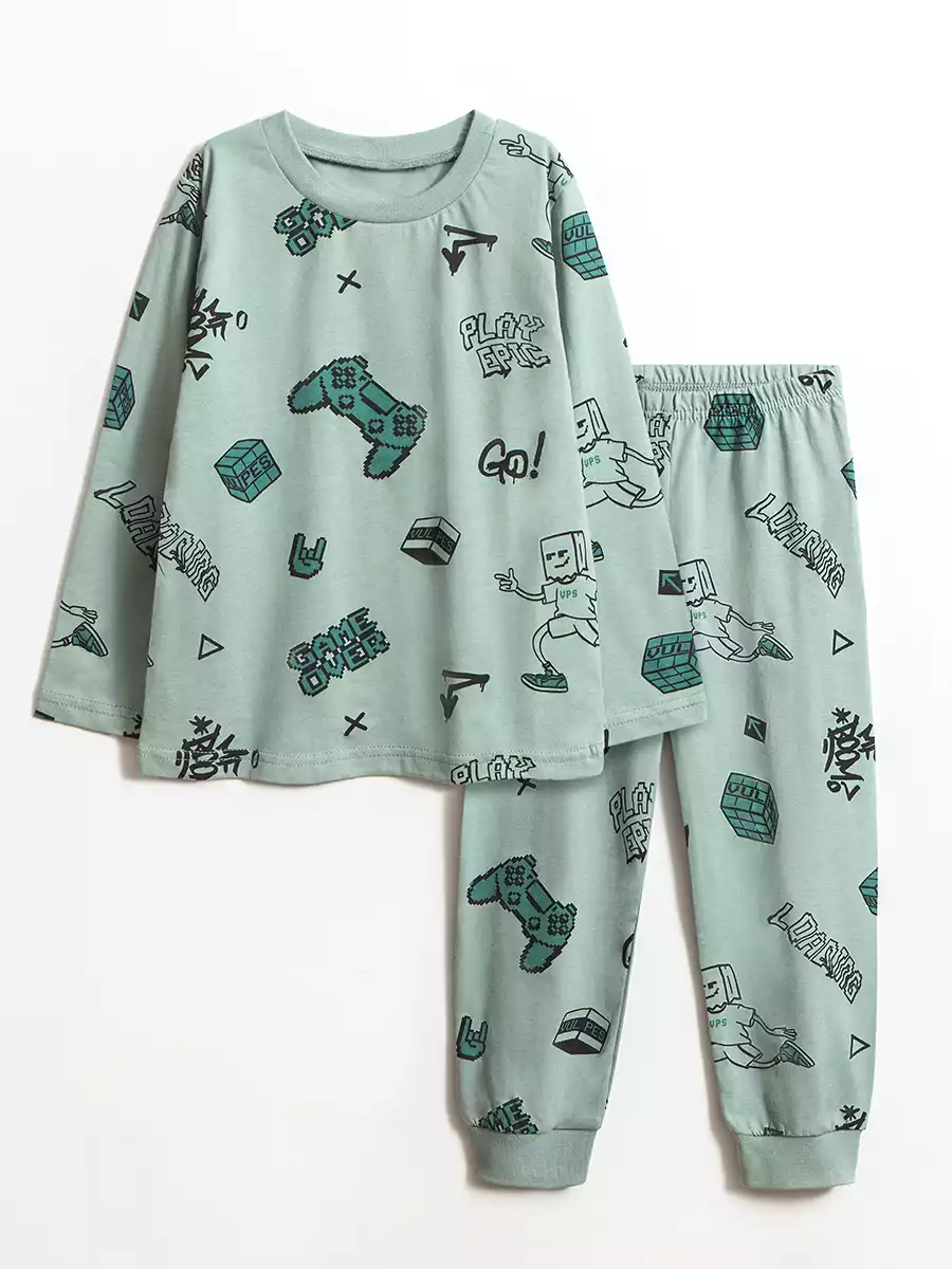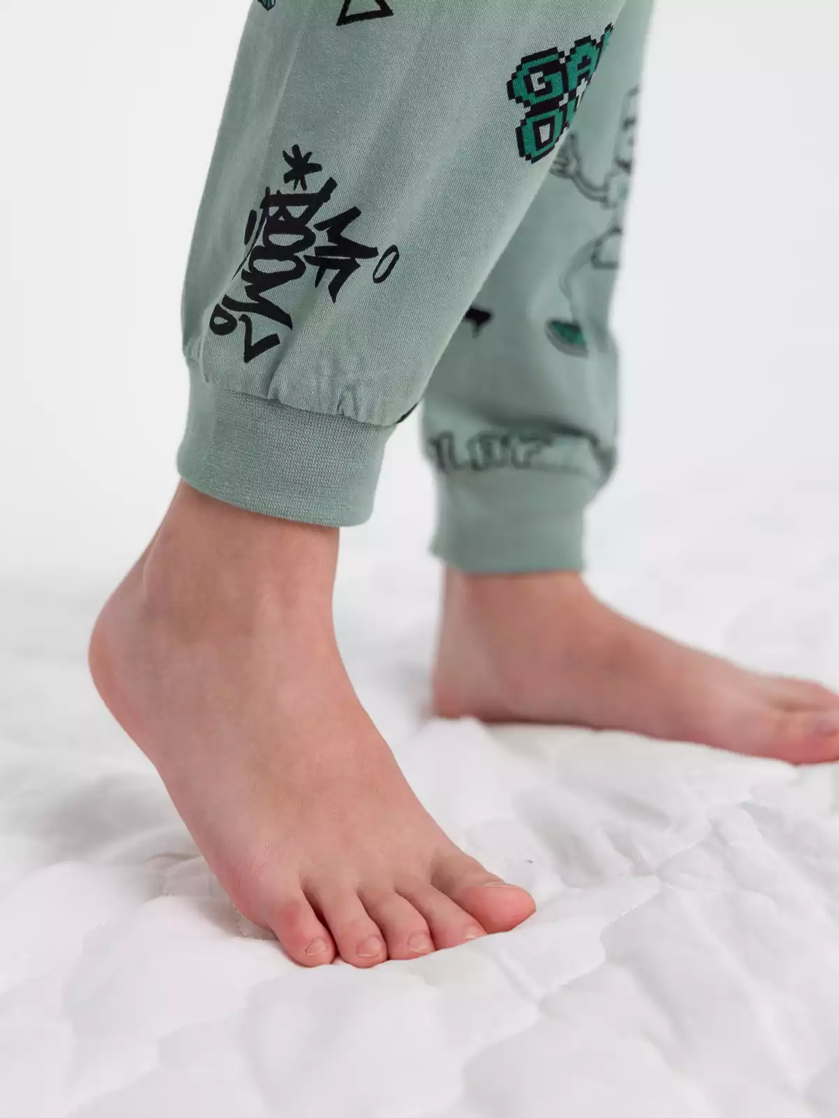 Пижама детская с длинными рукавами выполнена из натурального хлопка, она необычайно мягкая, легкая и не сковывает движения. Брюки на резинке по талии. Вся модель декорирована принтом. В такой стильной пижаме обеспечен комфортный и крепкий сон!