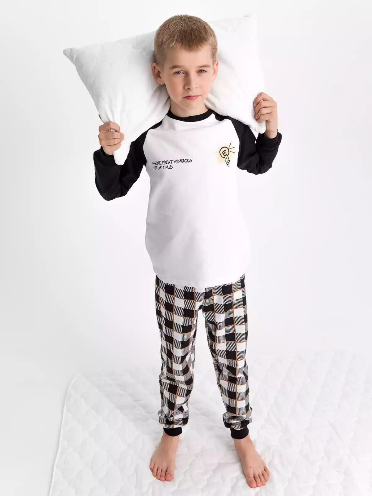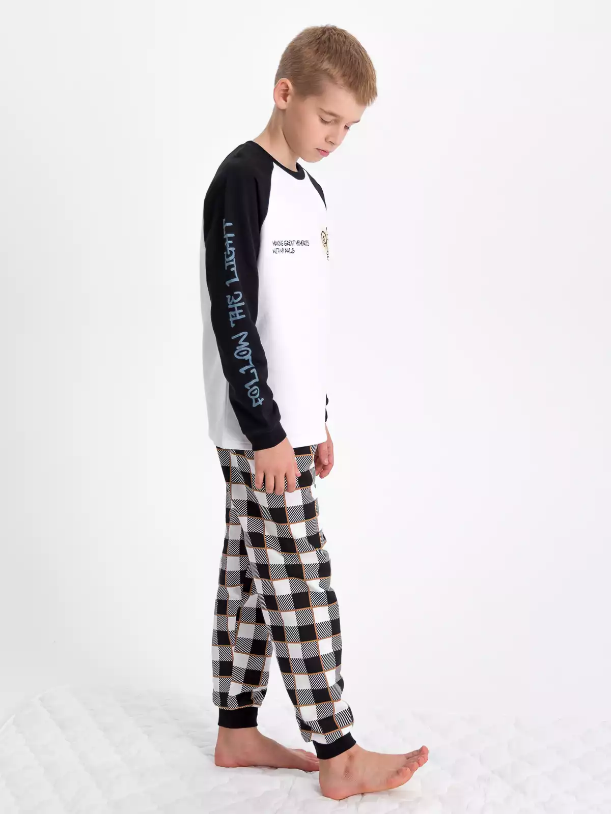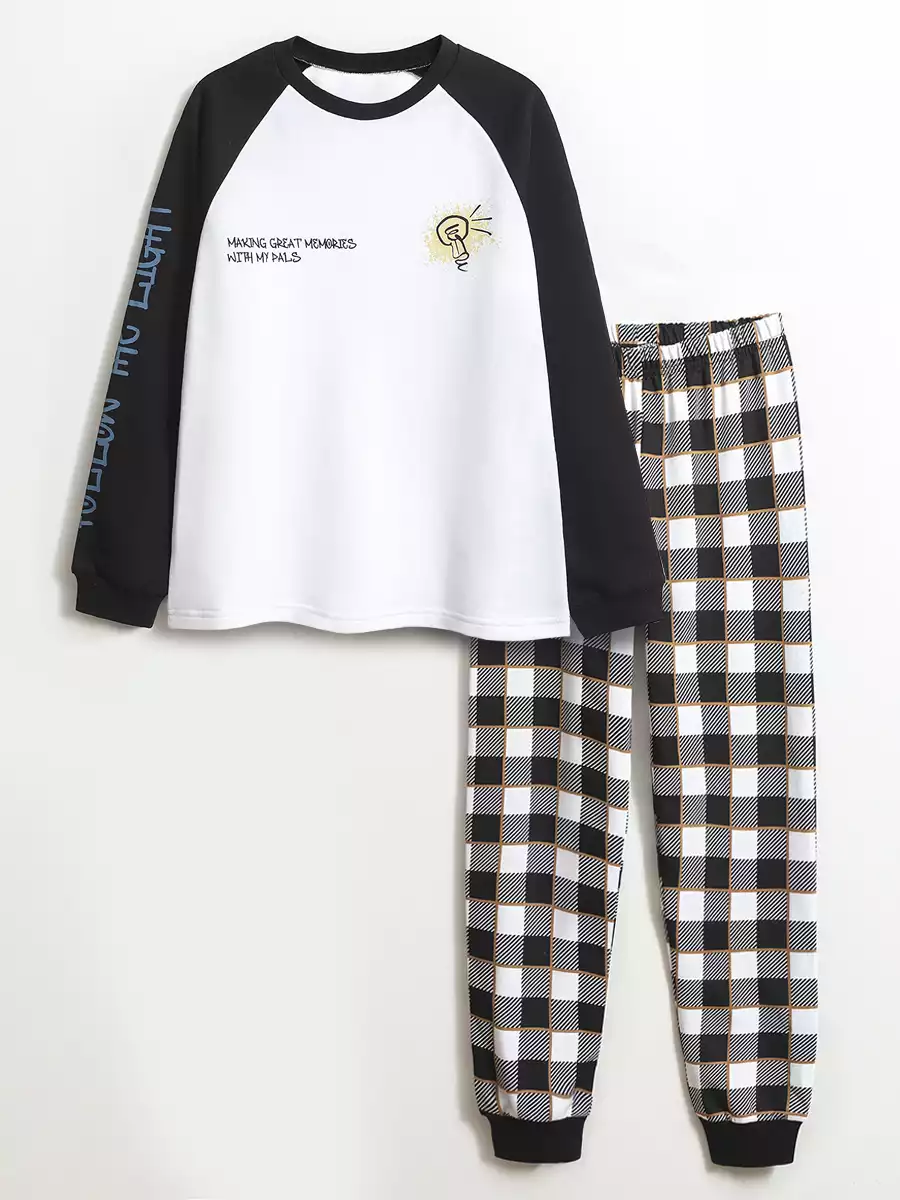 Пижама детская с длинными рукавами выполнена из натурального хлопка, она необычайно мягкая, легкая и не сковывает движения. Брюки на резинке по талии, декорированы принтом. На передней полочке имеется принт. В такой стильной пижаме обеспечен комфортный и крепкий сон!