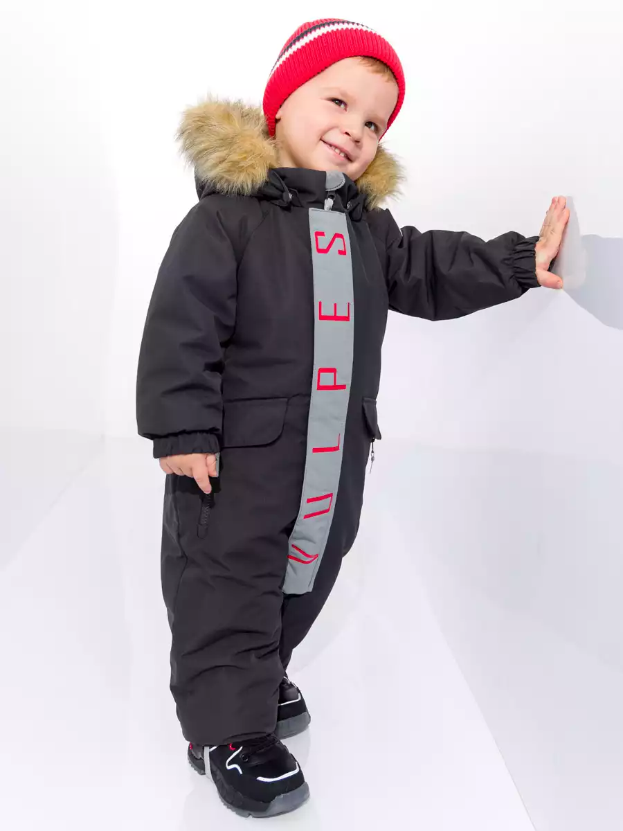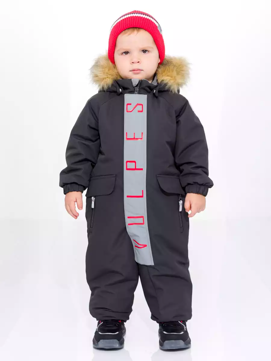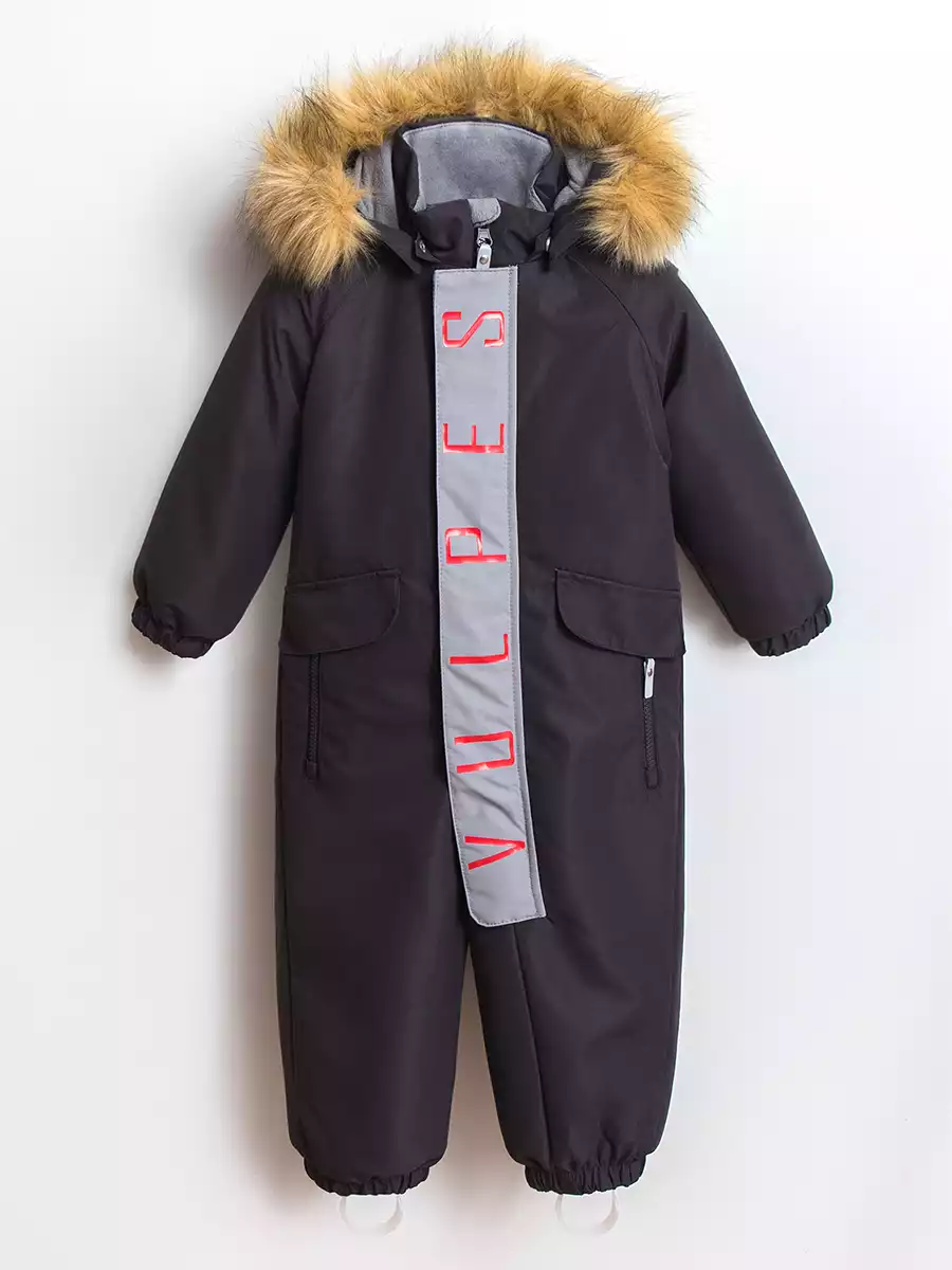 Бренд Vulpes. Тёплый зимний комбинезон в графитовом цвете с акцентной брендированной термоаппликацей на внешней ветрозащитной планке. Два удобных кармана на молнии, декорированы фигурным клапаном, удачно дополняют модель. мембрананая ткань верха с водо- и грязеотталкивающим покрытием, обеспечивает превосходную защиту при мокром снеге и оперативно отводит влагу от тела наружу. Утепление флисом внутренней части воротника, капюшона и зоны спинки до колен и переда до бедра для максимального комфорта. Гладкий полиэстер в рукавах и по низу брючин для свободы движений. Внутри – легкий гипоаллергенный утеплитель. Он не впитывает влагу и надежно сохраняет тепло. Цельный крой обеспечит защиту от продувания, прочные материалы препятствуют истиранию, а наполнитель и дополнительное утепление флисом даст ощущение комфорта даже при очень низкой температуре. Наслаждайтесь зимними прогулками, о тепле и комфорте мы позаботились!