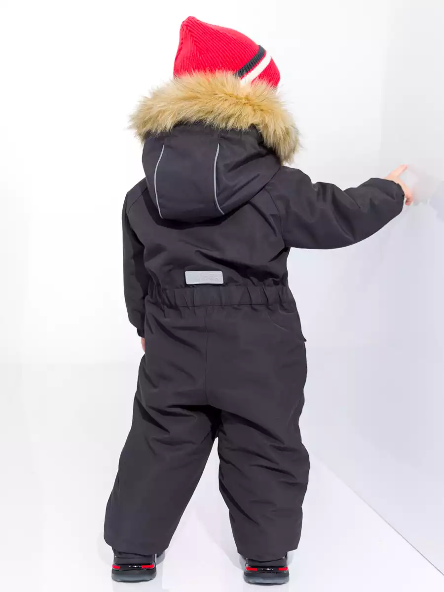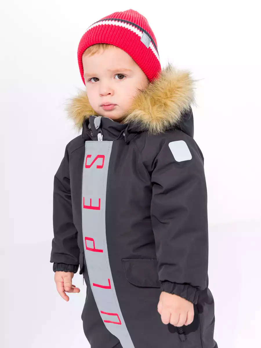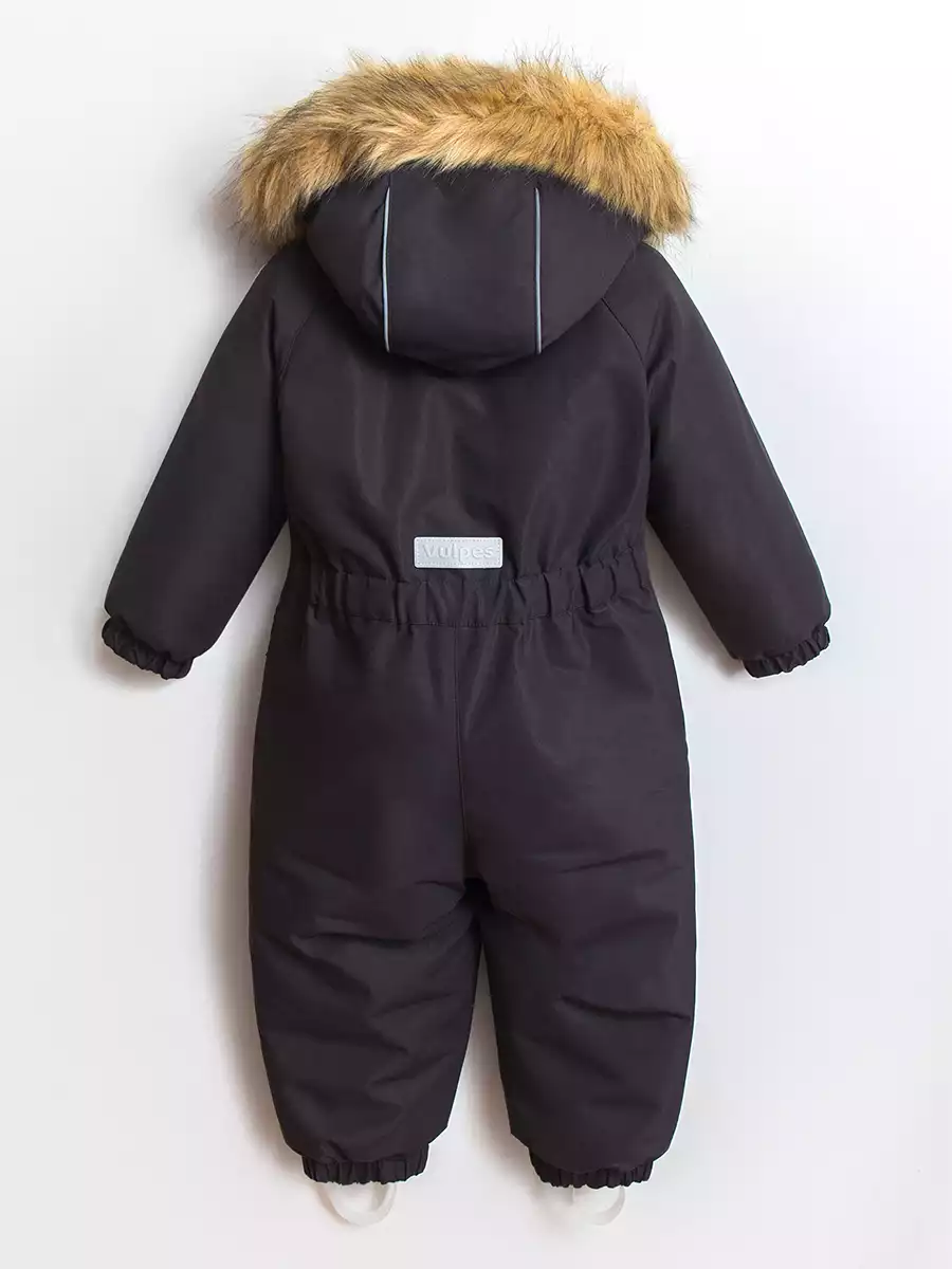 Бренд Vulpes. Тёплый зимний комбинезон в графитовом цвете с акцентной брендированной термоаппликацей на внешней ветрозащитной планке. Два удобных кармана на молнии, декорированы фигурным клапаном, удачно дополняют модель. мембрананая ткань верха с водо- и грязеотталкивающим покрытием, обеспечивает превосходную защиту при мокром снеге и оперативно отводит влагу от тела наружу. Утепление флисом внутренней части воротника, капюшона и зоны спинки до колен и переда до бедра для максимального комфорта. Гладкий полиэстер в рукавах и по низу брючин для свободы движений. Внутри – легкий гипоаллергенный утеплитель. Он не впитывает влагу и надежно сохраняет тепло. Цельный крой обеспечит защиту от продувания, прочные материалы препятствуют истиранию, а наполнитель и дополнительное утепление флисом даст ощущение комфорта даже при очень низкой температуре. Наслаждайтесь зимними прогулками, о тепле и комфорте мы позаботились!
