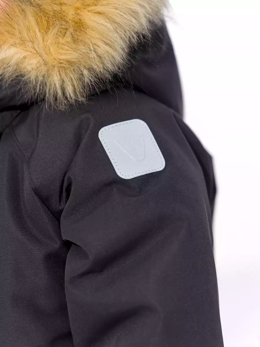 - Съёмная опушка из искусственного меха на молнии с дополнительной фиксацией отворотов меха на кнопки;